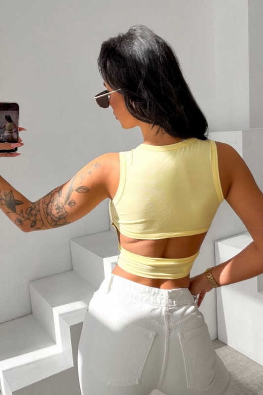 Hátul kivágással, amely kiemeli a hát vonalát és nőies megjelenést biztosít.