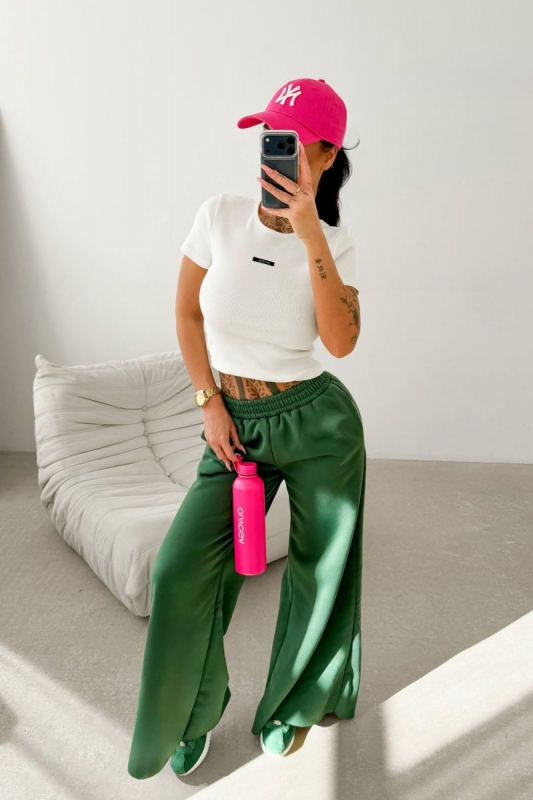 Testhezálló szabású basic póló bordázott kötött anyagból. Kerek nyakkivágással és rövid ujjal készült, kényelmes, jól kombinálható alapdarab.