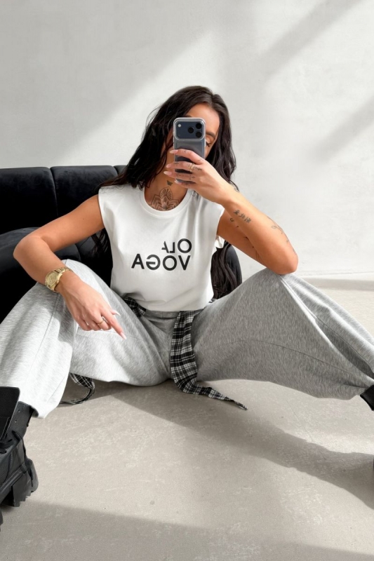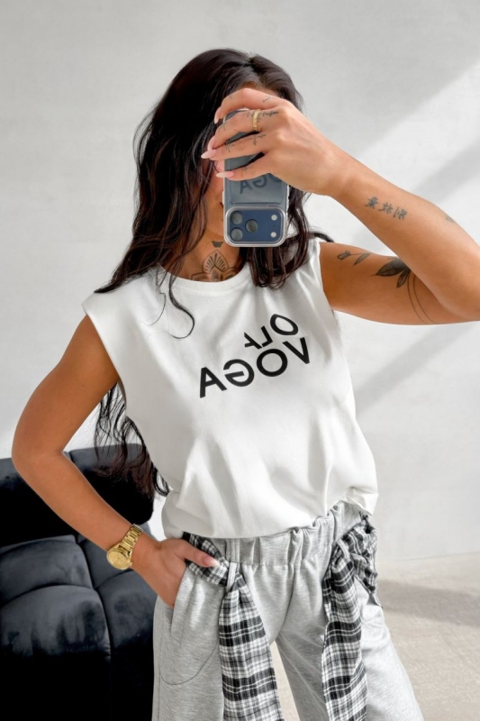 Laza szabású, ujjatlan felső magas minőségű pamut anyagból. Kerek nyakkivágással és bevarrt vállpárnákkal készült, amelyek hangsúlyos sziluettet adnak.