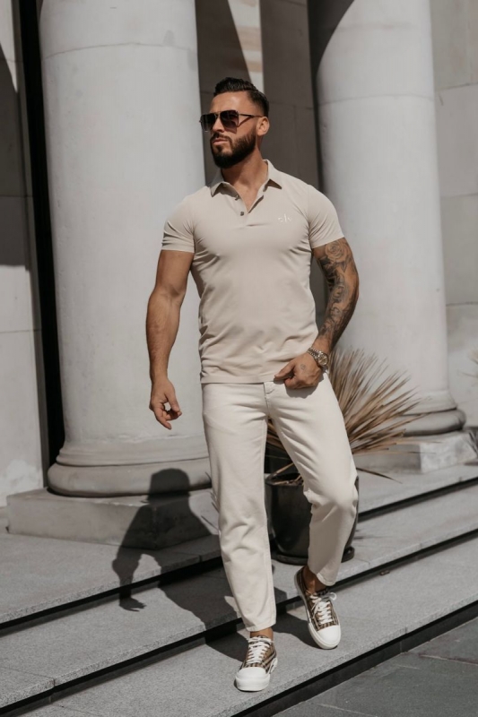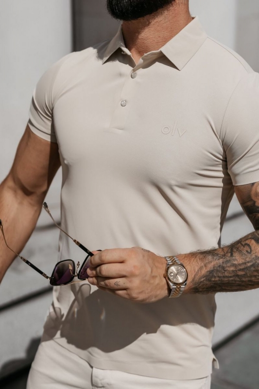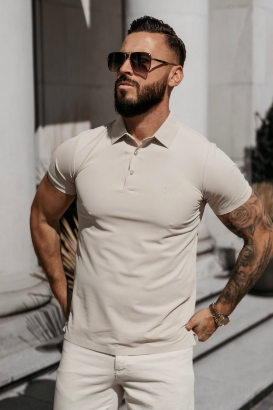 Klasszikus szabású pólóing rövid ujjal és gallérral. Elöl gombos záródással, díszített gombokkal. Strukturált kötött anyaga finom, elegáns hatást kelt.